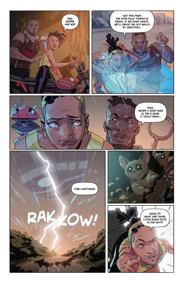 The outcasts believe they’ve gotten away with a priceless alien artifact known as the Eye of Ọ̀rúnmìlà. But when Governor Tosin’s elite strike team boards the Sankofa, the crew must call upon every ounce of cunning and skill they possess to make it out alive.