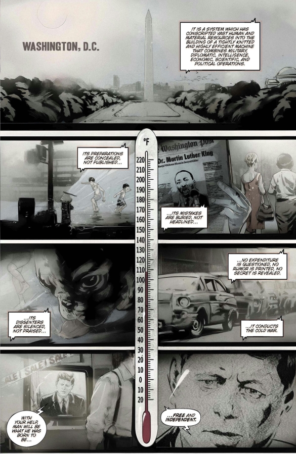 A high-stakes murder mystery perfect for fans of True Detective, Whiteout, and Insomnia. Diomede Islands. For three months each year, you can walk from the USA to Russia across an ice bridge—a frozen path known as the Ice Curtain. In 1963, when the body of a young woman is discovered on this icy no-man’s land, the already fragile relationship between the superpowers threatens to collapse. With nuclear tensions rising, an FBI agent and a KGB operative must solve the murder—before the ice melts…and war ignites. From SOMETHING EPIC and BLOOD COMMANDMENT creator SZYMON KUDRANSKI comes the must-read thriller of the year. Collects NO MAN’S LAND #1-4. Select praise for NO MAN’S LAND: “An outstanding high-concept.” —CBR “The best book of Kudranski’s career—one of the best books of the year.” —Pop Culture Philosophers “An exciting, compelling murder mystery with plenty of twists and turns.” —Comic Culture