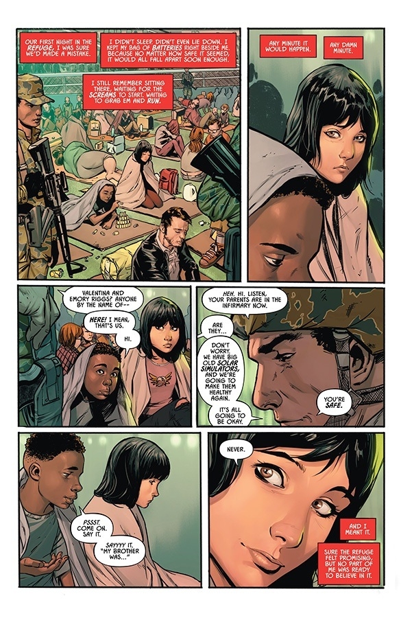 Look InsideIt's here! The penultimate issue of NOCTERRA's blockbuster first arc! VAL "Sundog" Riggs must choose whether to keep her brother EMORY safe in the mysterious SANCTUARY or risk it all against BLACKTOP BILL and hordes of human SHADES to find the truth about the darkness once and for all!