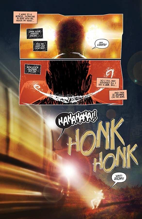 As Sundog Convoy fights to prevent the end of everything a Ferryman is shown the beautiful terrifying origin of light and darkness across all of space and time. This special one-shot will lead directly into the stunning conclusion of the "No Brakes"