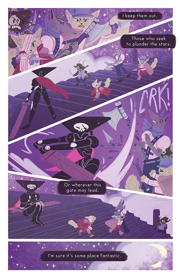 ALEXIS LERIGER DE LA PLANTE and NATASHA TARA PETROVIĆ bring their popular webcomic OPHIUCHUS to Image Comics! OPHIUCHUS is the story of the lone sentry of an ancient, inactive gate. One day, a strange being breaks through and infects her with a virus. And shortly after, she is approached by two machines, who implore her to follow them to the center of the universe to put an end to that virus—a malevolent being which rots all worlds.