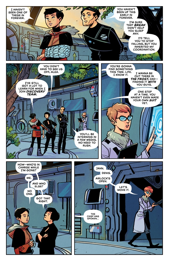 Welcome to Outpost Zero, the smallest town in the universe. The people there work the land, go to the fights every Friday night, and tuck their children into bed—but the Outpost is no place for dreams or aspirations. To survive is ambitious enough. As Alea and her friends graduate to adulthood on a frozen world never meant to support human life, something stirs. Something sees… Explore the mysteries and wonder of the Frost in this oversized debut issue by Eisner-winning writer SEAN KELLEY McKEEVER, artist ALEXANDRE TEFENKGI, and colorist JEAN-FRANCOIS BEAULIEU.