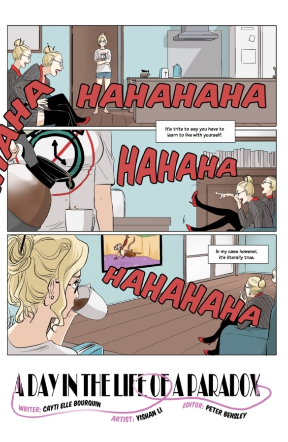 As a hero with the power to go anywhere and anywhen, Paradox Girl has made an absolute mess of her own life. She’s changed history so often that she isn’t even sure who she is anymore. Join her in this superhero comedy as she tries to make sense of her chaotic existence, chases bizarre whims, and maybe even finds time to save the day once in a while.Collects PARADOX GIRL #1-6