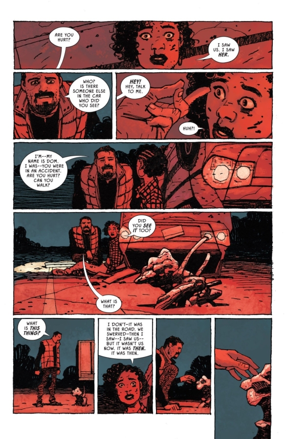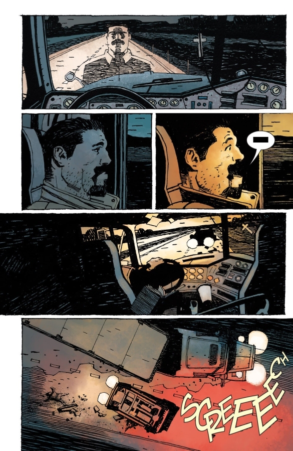 SERIES PREMIEREDom is a long-haul truck driver attempting to stay ahead of his tragic past. When he stops one night to assist Birdie, who has been in a massive car crash, they pull an artifact from the wreckage that throws their lives into fifth gear. Suddenly, a typical midnight run has become a frantic journey through a surreal world where Dom and Birdie find themselves the quarry of strange and impossible monsters.It’s grindhouse horror meeting high-concept supernatural fantasy in the first issue of a bold new series from JEFF LEMIRE (THE BONE ORCHARD MYTHOS, LITTLE MONSTERS) and GABRIEL HERNÁNDEZ WALTA (The Vision, Hellboy and the B.P.R.D: Old Man Whittier), the Eisner Award-nominated creative team behind the bestselling Sentient series.