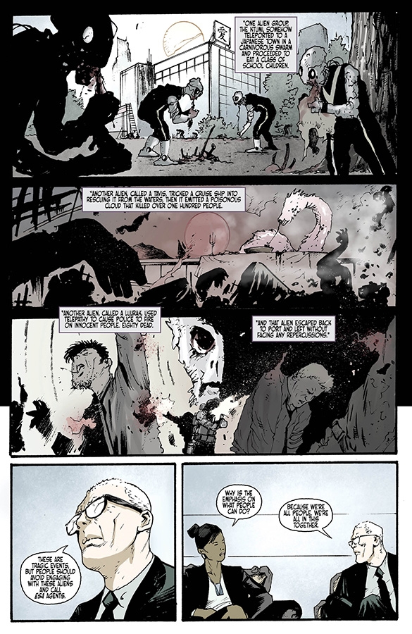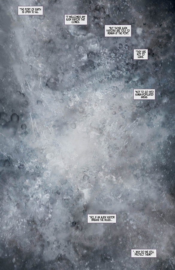 Earth Security Agents Rice and McIntyre must return a dangerous alien safely to Port, but while Rice would rather take a safe and careful approach, McIntyre is determined to use lethal force if necessary. Despite being divided, they grab their big alien guns and confront the alien in climactic fashion, all as journalist Julia Campbell presses ESA head Tom Rutgers about the frightening future of the Port of Earth.