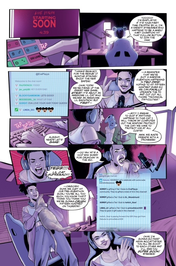 Look InsideSeries writer KYLE HIGGINS is joined by Twitch superstar MEGHAN "STRAWBURRY17" CAMARENA and iconic artist GOÑI MONTES for a standalone story that reveals the secret origins of Radiant Pink!