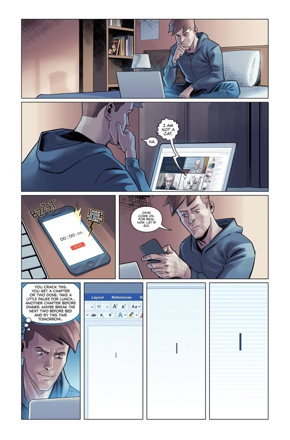 Okay, that's it. Nathan's getting down to business today: he's finally working on his novel. All he needs is some solitary writing time—no "helpful" parents, no superhero social media, and definitely no alien voices beaming an unintelligible language into his brain. That's not too much to ask for, right?