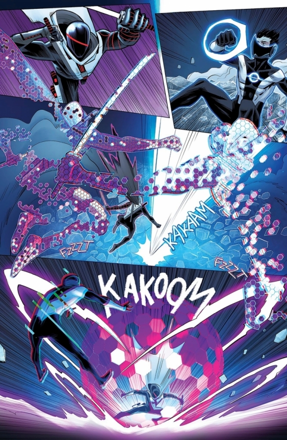 Picking up from the shocking ending of issue five, Radiant Black’s life just got a whole lot more complicated. Pursued by a new enemy and not sure who to trust, will our hero escape with his life? Or is this the beginning of the end for RADIANT BLACK?