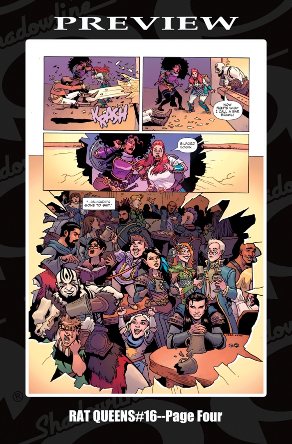 "WHEN BEARDS COLLIDE" Part One. The Rat Queens return to Palisade to find that the world has moved on without them. The tavern is infested with would be heroes, drinking all the ale and getting in all the fights. What’s a warrior girl to do?