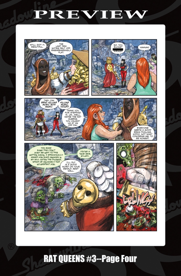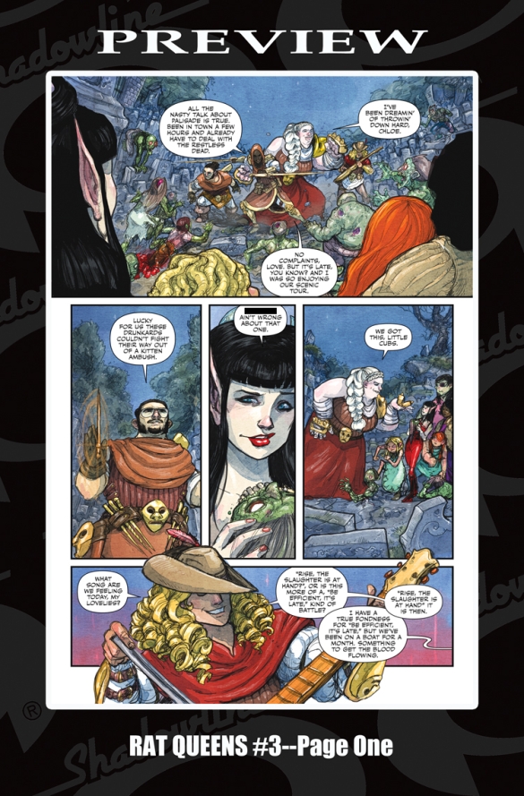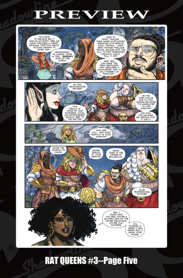 A mysterious quest for a local gourmet chef leads the Queens on a raucous adventure far outside the safety of Palisade’s walls. What possible trouble could a gang of five heavily armed women get into while hunting for rare mushrooms?