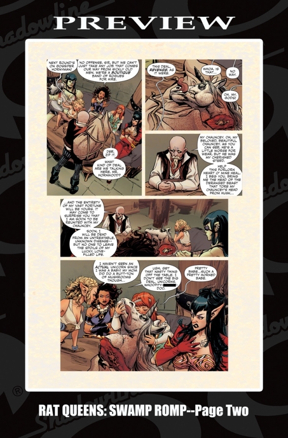 Dragons. Monsters. Tricksters. The Rat Queens have seen—and slayed!—it all. But when a dying man of great wealth hires our heroes to exact revenge for the murder of his prized unicorn, Betty, Hannah, Braga, Violet, and Dee are suddenly thrust into a quest that may bring them face-to-face with a mythological creature thought only to exist in bedtime stories. This is Palisade’s urban legend, and it will end with either death or a mass fortune.Featuring the all-new RAT QUEENS creative team, RYAN FERRIER (Death Orb, Criminy) and PRISCILLA PETRAITES (Brilliant Trash)—who will be taking the reins of the ongoing title starting with issue #16!