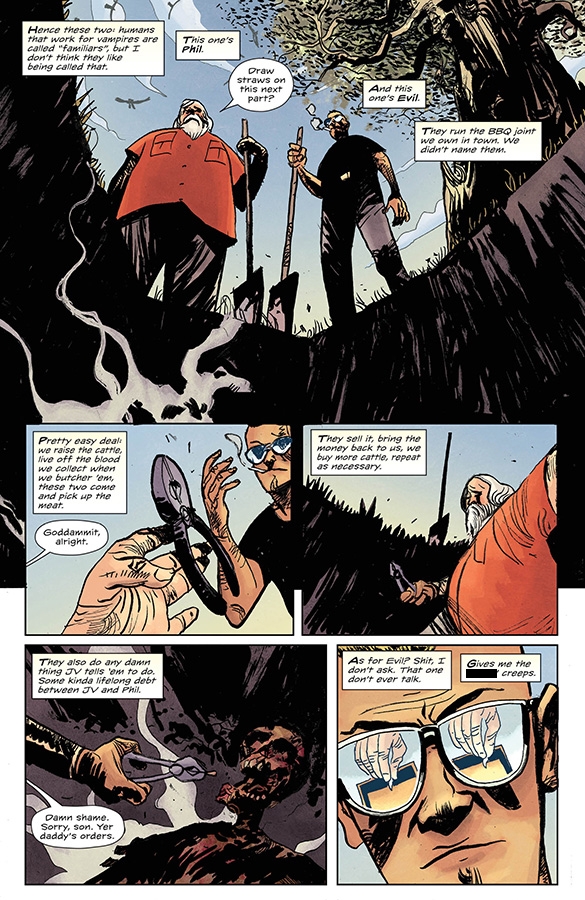 Death and destruction have come to Sulphur Springs! With the murder of one of their own, the vampiric Bowmans are ready to wage war on anyone in their path. But will Bartlett be able to get to the bottom of things before the whole town explodes? DONNY CATES and LISANDRO ESTHERREN bring you the next chapter in this blood-soaked, Southern-fried Gothic masterpiece!