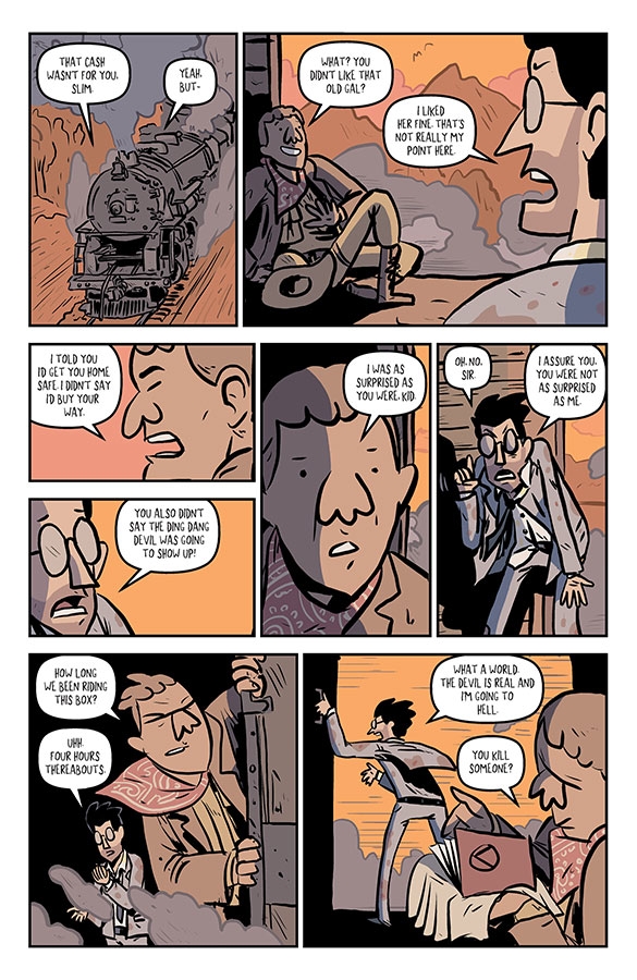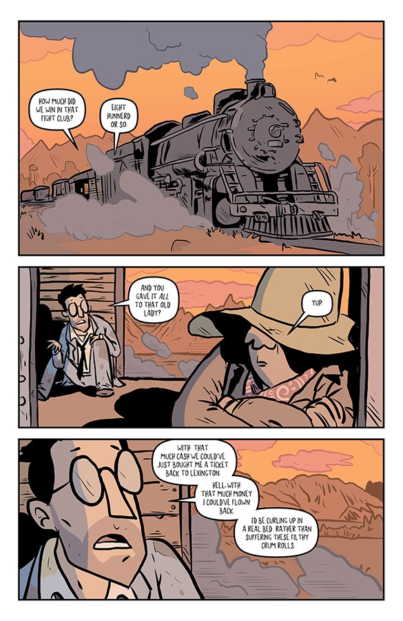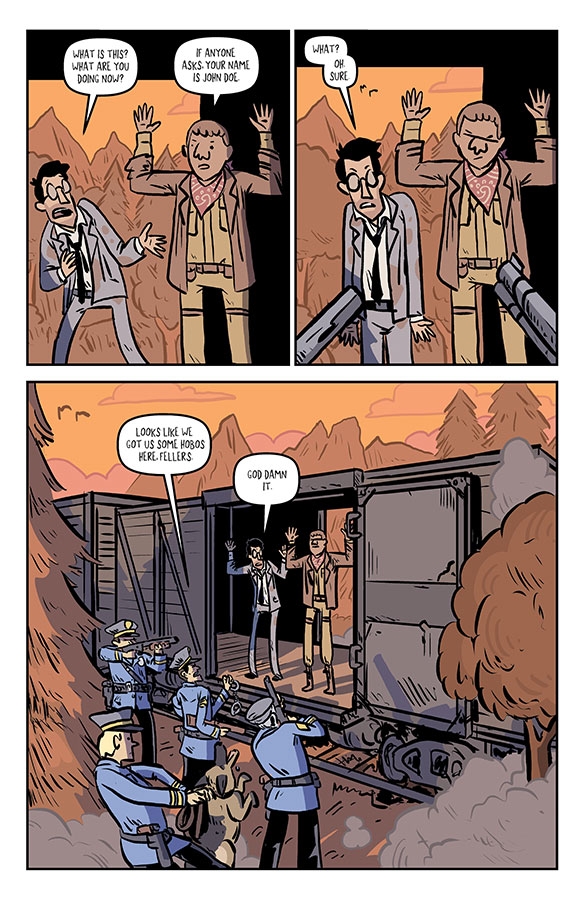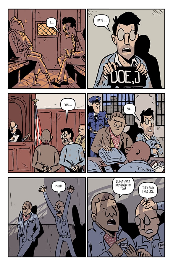 END OF STORY ARC Well, you wouldn't think it could get any worse for our Hobo Heroes did you? On the run from a swarm of G-Men and the Literal Devil, but well, here we are—trapped like rats in a prison?!?! Oh, what have our Sweet Boys done? How will they get to the legendary Rock Candy Mountain if they're stuck in the clink? Is this all part of Jackson's mysterious master plan? Can Pomona Slim survive the harsh confines? We'll have to see won't we? Oh yeah, and Jackson fights the entire prison.