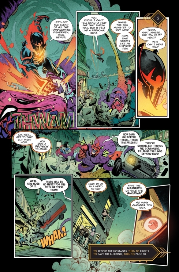 After the shocking ending to his fight with Cataclysm, Dylan has no idea what to do next—but luckily, he has YOU to help! In this very special issue, you make the decisions and choose Dylan’s path in a fight against an enemy who controls time itself!