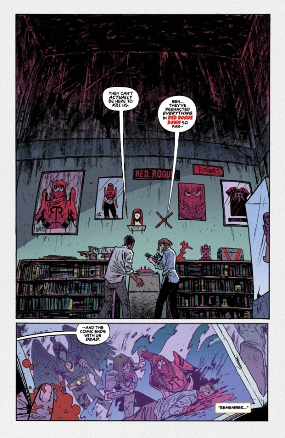 With the dark truth revealed Maisie must fight back if she is to survive Dodge's deadly reenactment of Red Rogue Down. Every superhero has their origin story and this is Maisie Wade's. Prepare for a climactic showdown that will force Maisie to don the mask and batons and become the hero she has grown to despise. It's Red Rogue vs. Jackdaw in this explosive final issue. Who lives is anyone's guess.