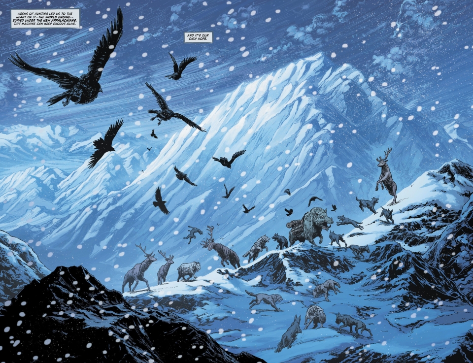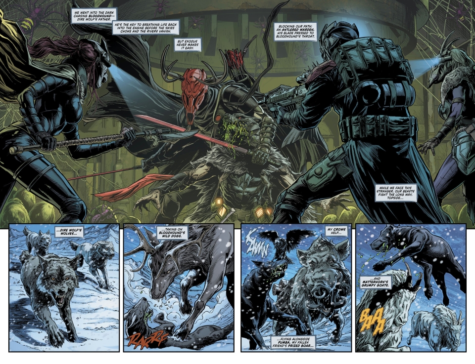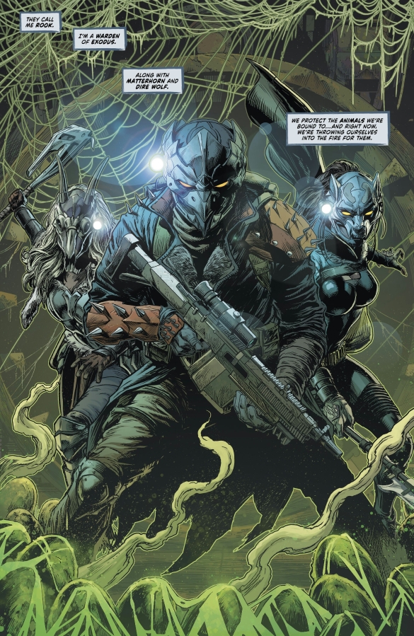The hit sci-fi epic plunges deeper into the heart of Exodus! Trapped in the lair of the monstrous Arachnid, Rook, Dire Wolf, and Matterhorn face thousands of ravenous mutated spiders—and time is running out. If the wardens fail, the fate of Exodus itself may be sealed in the web. Plus, who is Stag…and why does he want Dire Wolf’s father dead?
