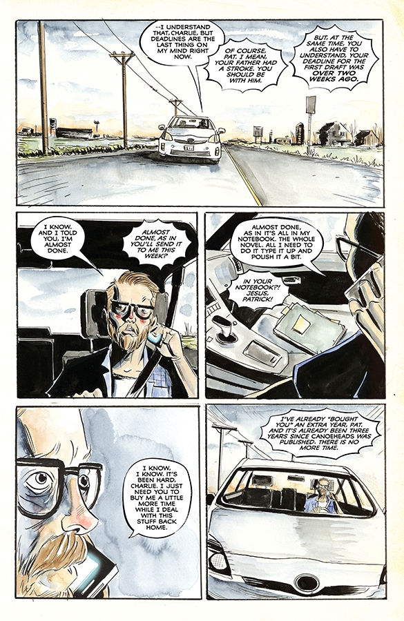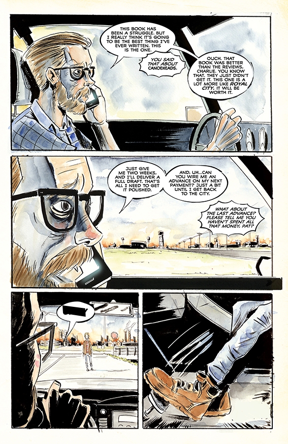NEW ONGOING SERIES written and illustrated by JEFF LEMIRE (DESCENDER, A.D., Sweet Tooth). ROYAL CITY charts the lives, loves, and losses of a troubled family and a vanishing town across three decades. Patrick Pike, a fading literary star who reluctantly returns to the once-thriving factory town where he grew up, is quickly drawn back into the dramas of his two adult siblings, his overbearing mother, and his brow-beaten father, all of whom are still haunted by different versions of his youngest brother, Tommy, who drowned decades ago. ROYAL CITY is a return to the literary and thematic territory of LEMIRE’s breakthrough graphic novel Essex County and is his most ambitious, and most personal, project to date.