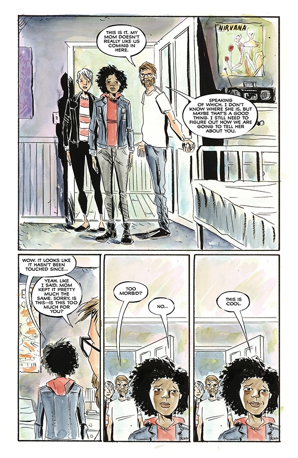 "WE ALL FLOAT ON," Part Two Richie Pike is on the run from Royal City and from himself as he faces the demons of his past. Meanwhile, Patti and Pete reconcile in the most unexpected way. JEFF LEMIRE's multi-generational family saga continues, and the Pike family heads toward a reckoning 20 years in the making.