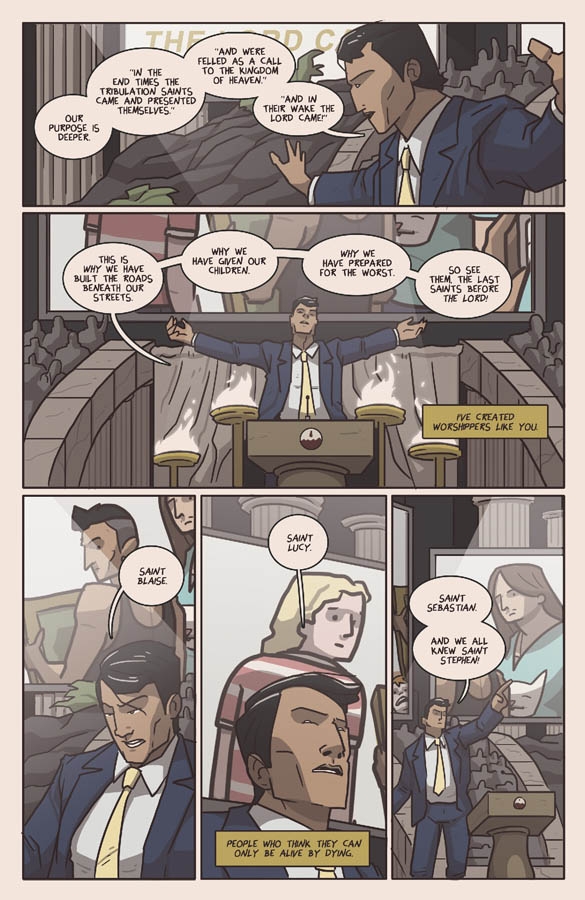 The wild group of Saints exit to New Mexico after battling Michael's Southern Fried Henchmen. There an old friend of Blaise's plays some metal records backwards and accidentally conjures Baal, the prince of hell. Heavy Metal, irreverent humor, and saintly murder continue in this ongoing series.