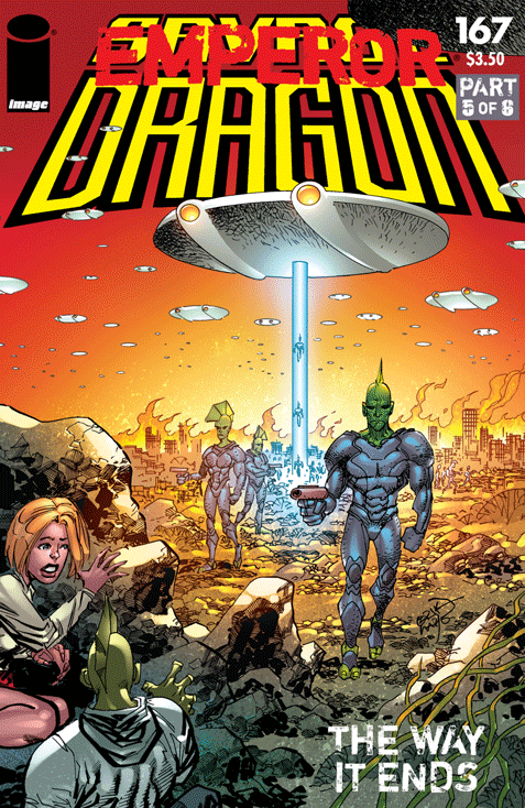 EMPEROR DRAGON' PART 5 (of 6) The pieces fall into place and Emperor Kurr's master plan is revealed at last! The world is on the brink of annihilation and Savage Dragon has his finger on the button! The events in this issue are so unexpected-so shocking-that we can't show you the cover to this issue without spoiling the surprise! It's unlike anything you've ever read or imagined! This is all building to the most explosive finale in the history of comics! Prepare to have your senses shattered and your mind blown! This is the big one! The countdown to the end of the world ends here! Comes with our highest possible recommendation!