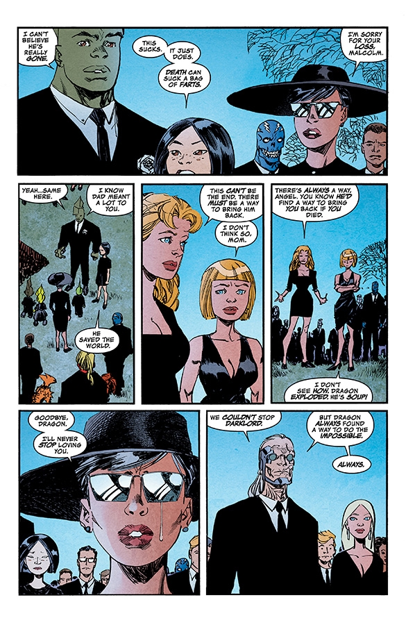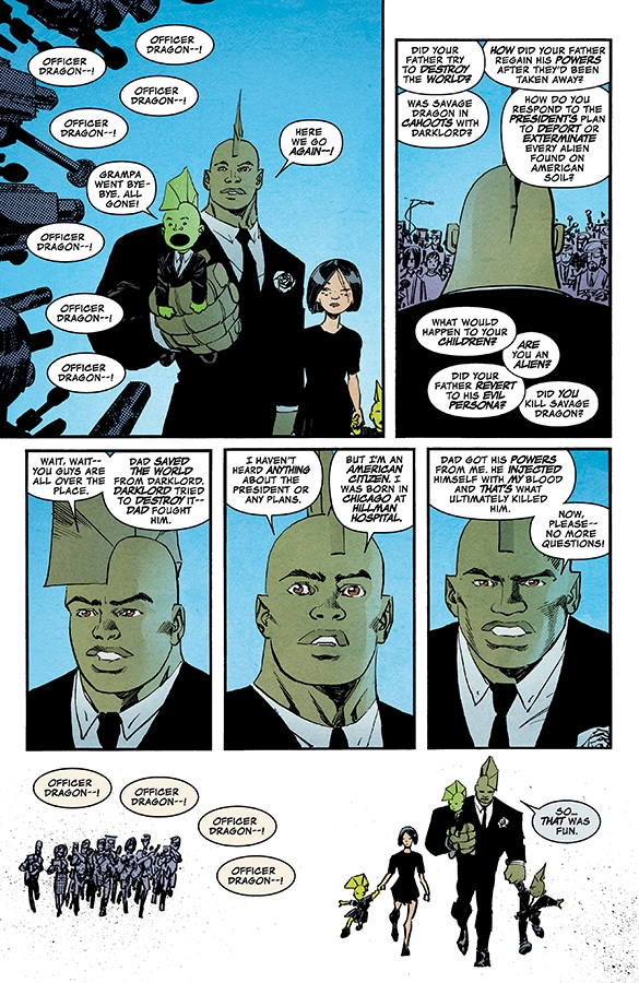 SELF-CONTAINED ISSUE "TRUMPED" When a tyrannical madman assumes command of the United States, aliens are deemed a threat to national security and targeted for elimination—and that includes Malcolm Dragon and his family! With a country turned against him, Malcolm Dragon fights as he’s never fought before!