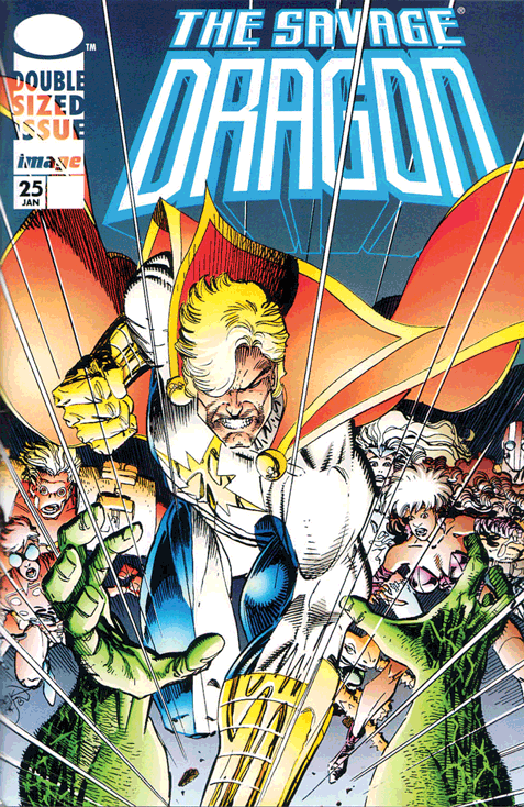 Mighty-Man re-breaks the Dragon's bones, which begin to heal properly. Johnny Redbeard re-creates Bludgeon, and Amanda Mills meets Peter Klaptin, who re-assumes the mantle of Star to impress her. Howard Niseman and Chris Robinson are captured by a gang of Freaks, and the massive jailbreak continues. New police captain Mendosa forces Dragon to start working on his paperwork. In a back-up story by Keith Giffen, Jeff Matsuda & Terry Austin, SuperPatriot enlists the Dragon into helping him defeat the forces of Body Function, a team of disgusting criminals led by Cesspool, all of whom are rounded up and defeated by the two super heroes.