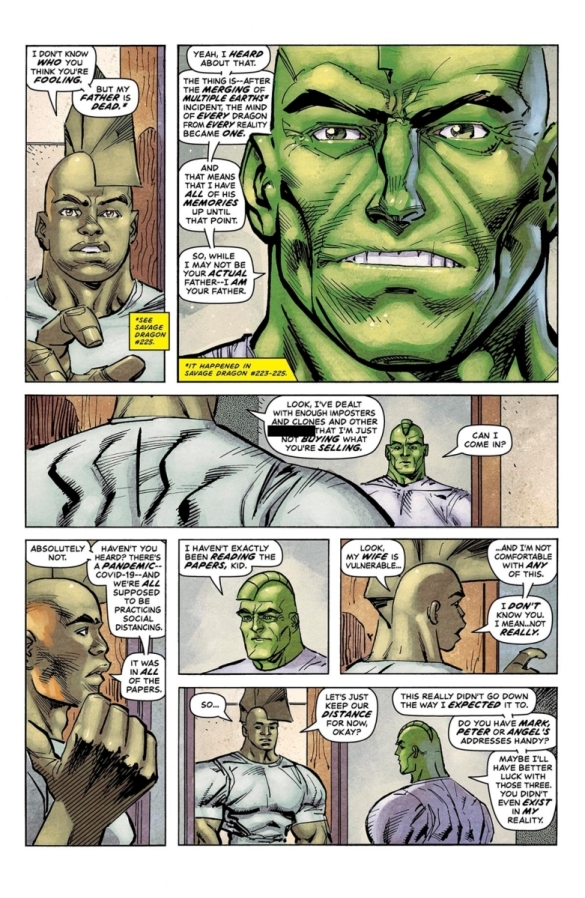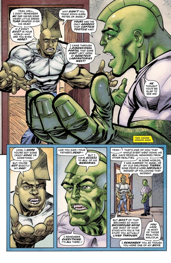 "CRAWLING FROM THE WRECKAGE"Following the cataclysmic conclusion of SAVAGE DRAGON #250, Malcolm Dragon has to put the pieces of his shattered life back together. A standalone issue that sets the stage for what’s to come, from award-winning writer/artist ERIK LARSEN. A great jumping-on point for new readers!