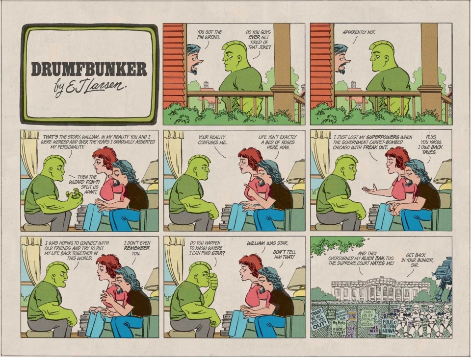 "SUNDAY FUNNIES"Another wildly experimental issue wherein each double-page spread is told in the style of a classic newspaper comic strip—from a Peanuts parody to a Dick Tracy send-up, from a Doonesbury lampoon to a Blondie satire, this issue is sure to amaze and inspire.