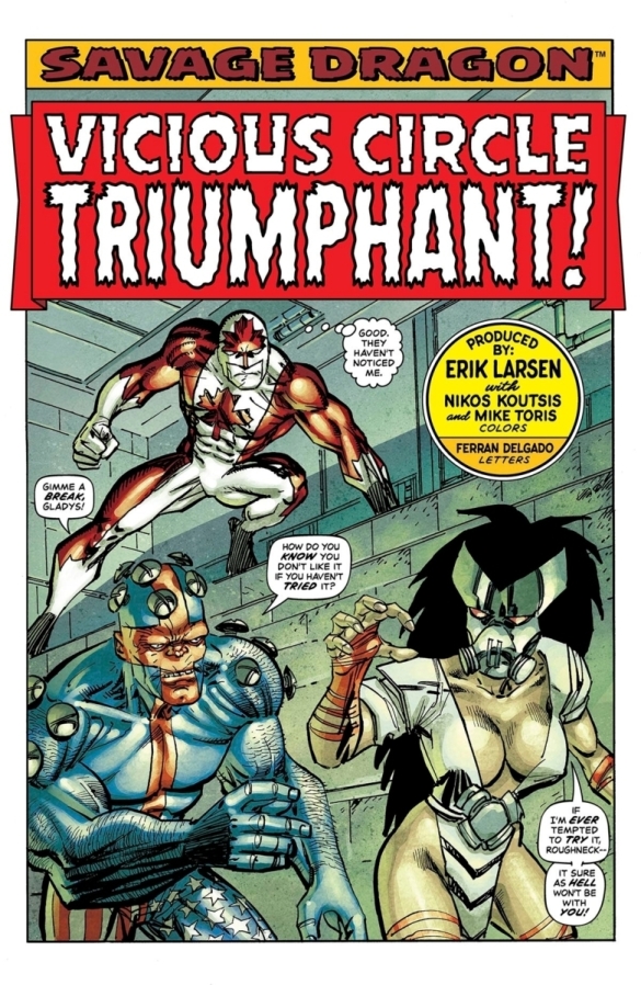 "THE VICIOUS CIRCLE TRIUMPHANT"Malcolm Dragon is overwhelmed by the superior firepower of the newly assembled and fully operational Vicious Circle, and a dark cloud falls over the city of Toronto. Meanwhile, Paul Dragon tries to put together the pieces of his shattered past. Comes with our highest possible recommendation.