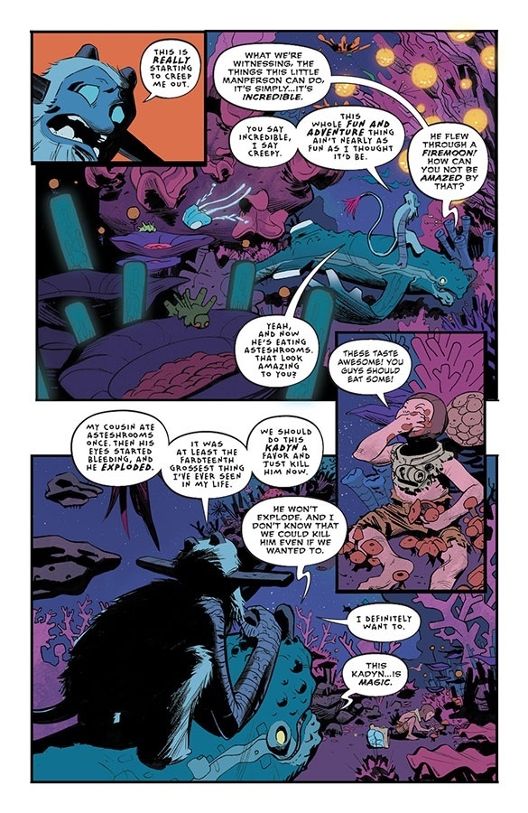 "LOST IN THE WILDS OF HEAVEN," Part ThreeKadyn’s powers continue to grow! He can now survive in the vacuum of space, fly on his own, and unleash great mind-bending energies. Meanwhile, Gil thinks he’s found refuge on a planet—until the local plant life tries to murder him!