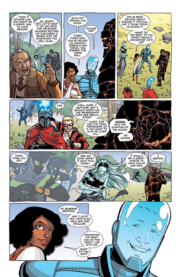 The supergroup known as The Front Line have just invited new hero Crosswind to join them. But what they don't know is that Crosswind is a mole, sent to learn all their secrets. And the Front Line have LOTS of secrets. Writers BRIAN JOINES and JAY FAERBER and the stunning art team of ILIAS KYRIAZIS and CHARLIE KIRCHOFF bring you classic super-team action and intrigue for the 21st century. Behind every mask is a secret...