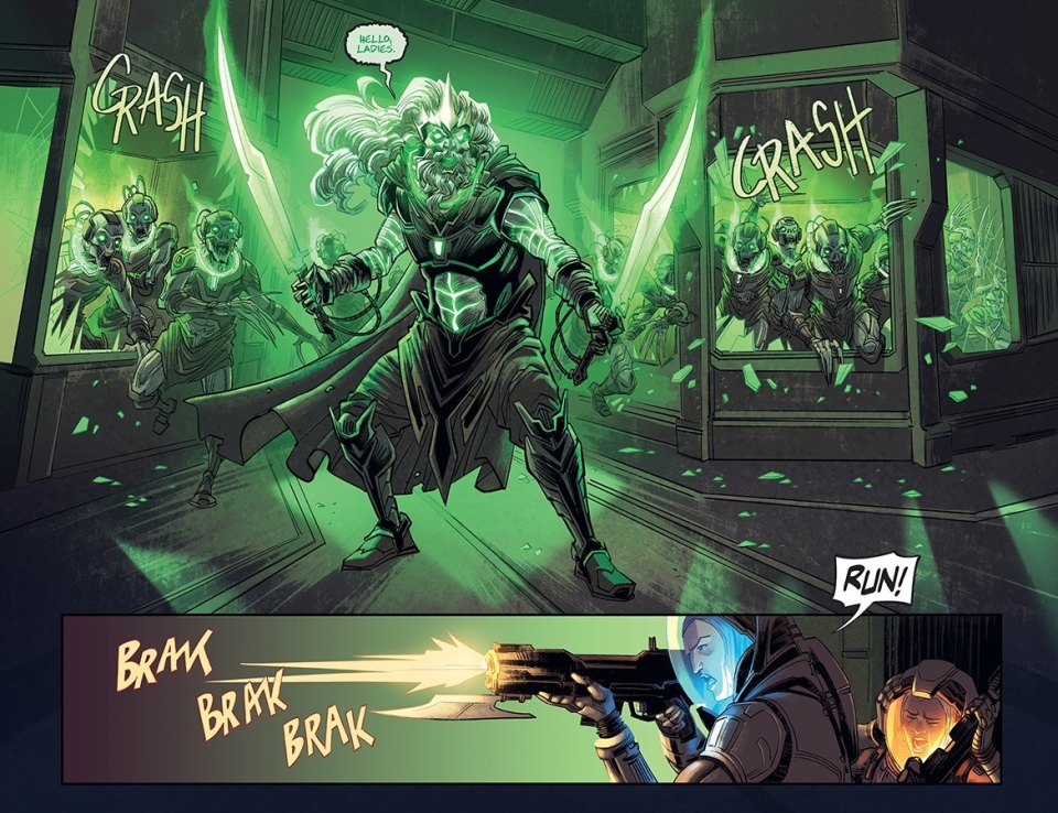 "THE SPORT OF GHOST KINGS"With the walls closing in on them, Amala and her creator must set aside their differences—because a vengeful Brycemere is coming for them, with a horde of cybernetic zombies at his back.