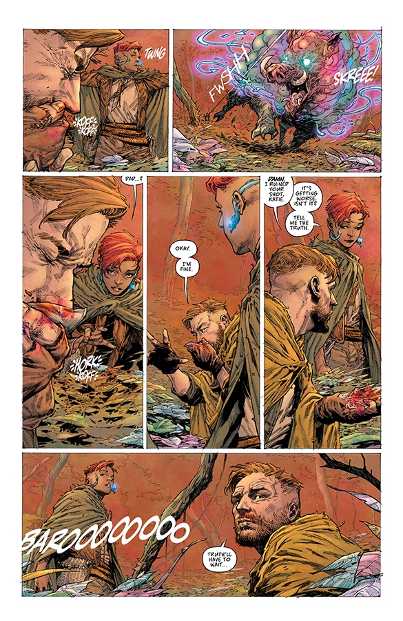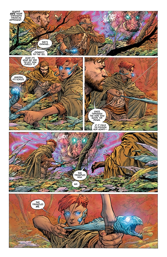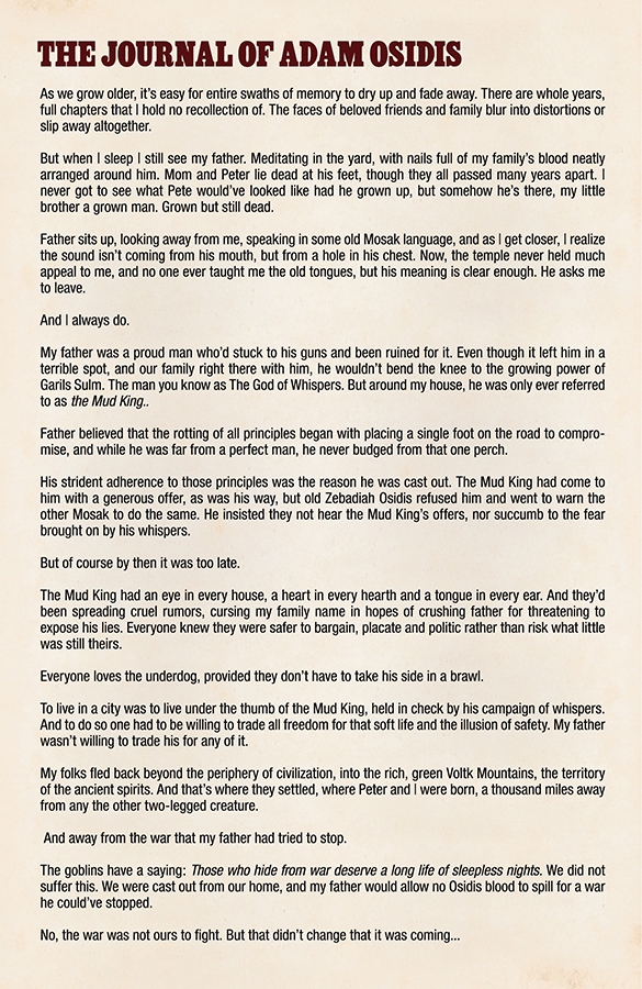 The God of Whispers has spread an omnipresent paranoia to every corner of the kingdom of Zhal; his spies hide in every hall spreading mistrust and fear. Adam Osidis, a dying knight from a disgraced house, must choose between joining a hopeless band of magic users in their desperat e bid to free their world of the evil God, or accepting his promise to give Adam everything his heart desires. Writer RICK REMENDER reteams with collaborators JEROME OPEÑA (Uncanny X-Force, Fear Agent) and MATT HOLLINGSWORTH (TOKYO GHOST, WYTCHES) to take you on a hard road through the strange fantasy world of Zhal. All men have surrendered their freedom for fear. Now, one last free man must choose.