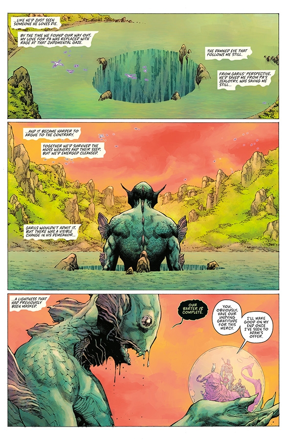 "THE SPRINGS OF ZHAL," Part One Adam Osidis and the Mud King travel the wastelands to the mythical Springs of Zhal, which promise a cure to Adam’s fatal disease—and the offer of the God of Whispers fulfilled. But when you deal with the devil, how soon before he lays claim to your soul?