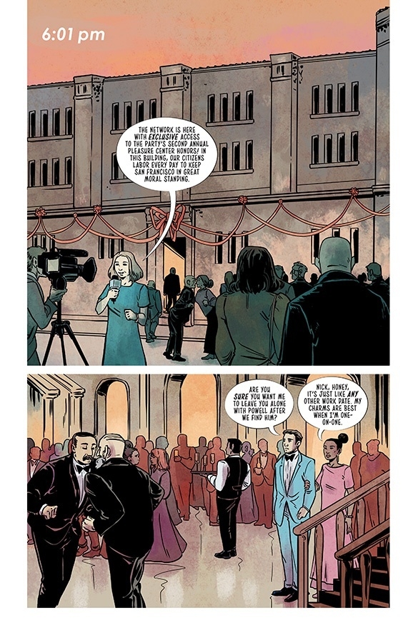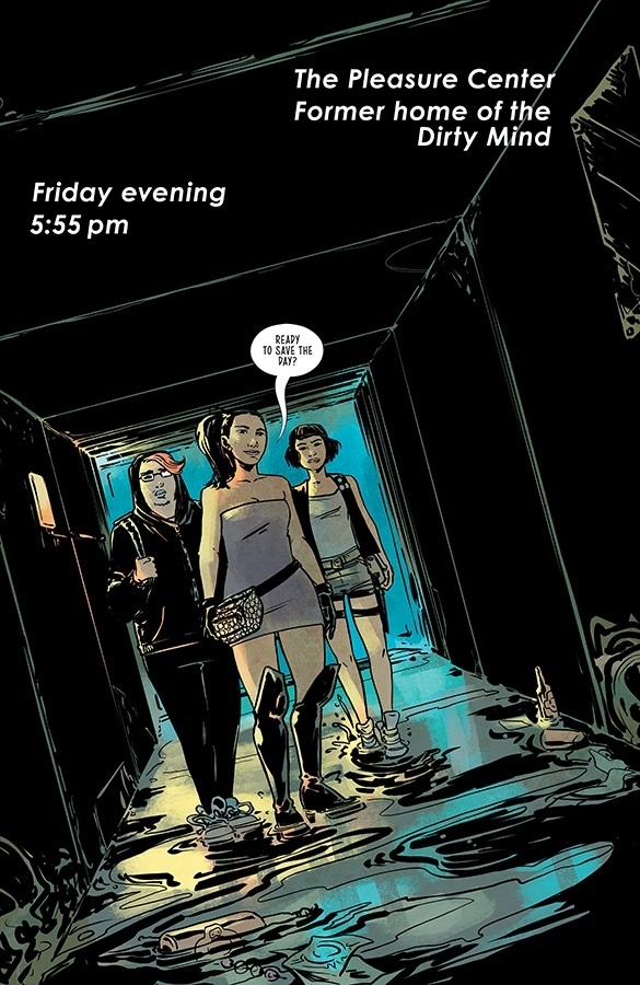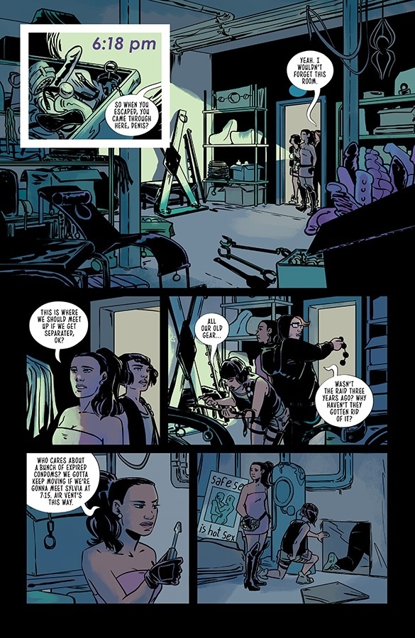 Introducing new series artist Jen Hickman."BARRIERS"The Dirty Mind team puts all their special skills of intrigue and bondage to use busting their friends out of the Pleasure Center. Just when the jailbreak seems to be going according to plan, everyone finds themselves in worse predicaments than ever.