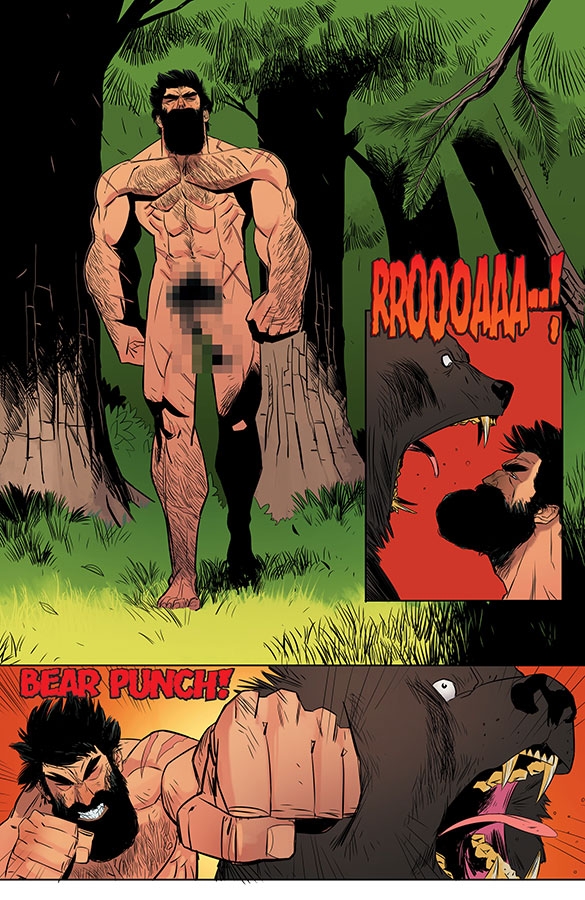 After being betrayed by the bears that raised him, the legendary Shirtless Bear-Fighter wanders the forest he’s sworn to protect, fistfighting bears, eating flapjacks, and being the angriest man the world has ever known! When wild-eyed, super-strong bears attack the citizens of Major City, Shirtless ventures into the human world to do what he does best...PUNCH THOSE BEARS IN THE FACE! But all is not as it seems. Someone is manipulating Shirtless...and only by confronting the demons of his past can Shirtless hope to save his future! A heart-filled, hilarious, tall tale for the ages… you don't want to miss SHIRTLESS BEAR-FIGHTER!