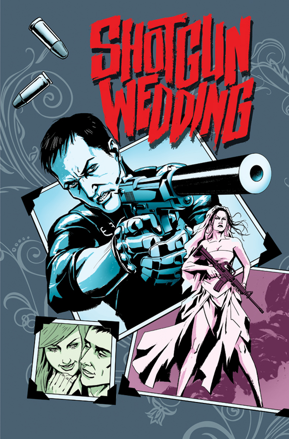 Mike Stone wants nothing more than to marry the woman of his dreams. Denise is smart, sexy, teaches the second grade, and loves Mike more than anything in the world. What she doesn’t know is that Mike is one of the world’s top assassins and was once engaged to a fellow assassin named Chloe. And when Mike abandoned Chloe on their wedding day, she vowed revenge... This April, treat yourself to an issue of SHOTGUN WEDDING each Wednesday! All FOUR issues of Minotaur Press's latest miniseries will be released in April, and the covers for all four issues connect to form one larger image.
