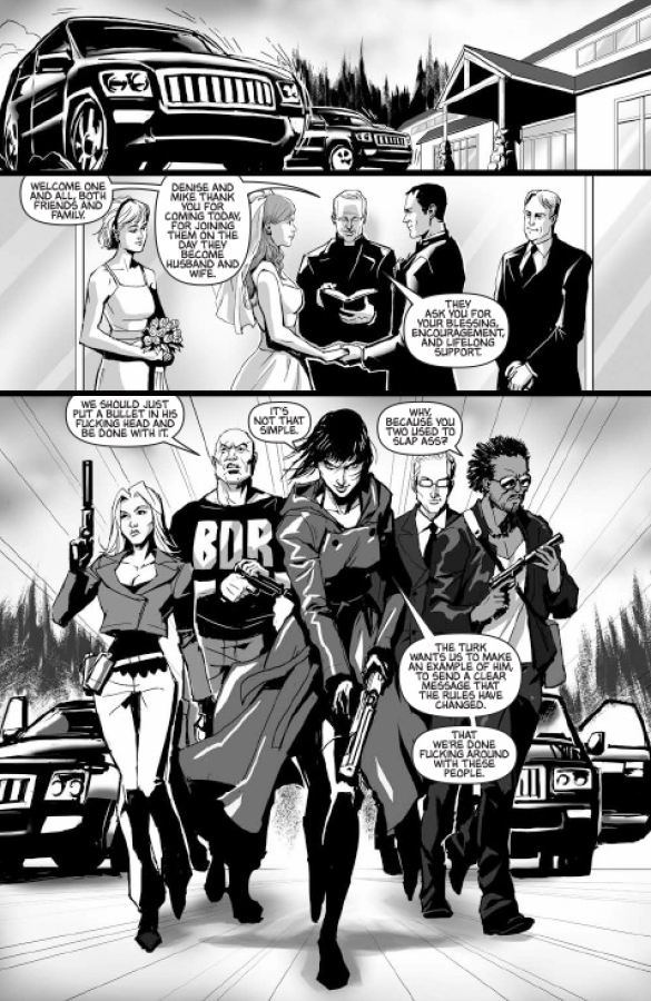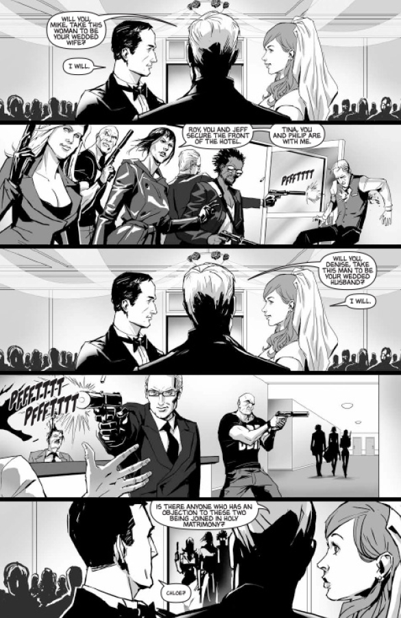 Mike Stone wants nothing more than to marry the woman of his dreams. Denise is smart, sexy, teaches the second grade, and loves Mike more than anything in the world. What she doesn't know is that Mike is one of the world's top assassins and was once engaged to a fellow assassin named Chloe. And when Mike abandoned Chloe on their wedding day, she vowed revenge... This April, treat yourself to an issue of SHOTGUN WEDDING each Wednesday!