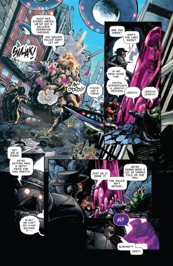 Kate Kristopher has been kidnapped by a robot, a few rat kids in cute outfits and a bunch of ninja ghosts. Luckily the NYPD pursues them in their flying saucers. Everything goes horribly wrong. Death happens.