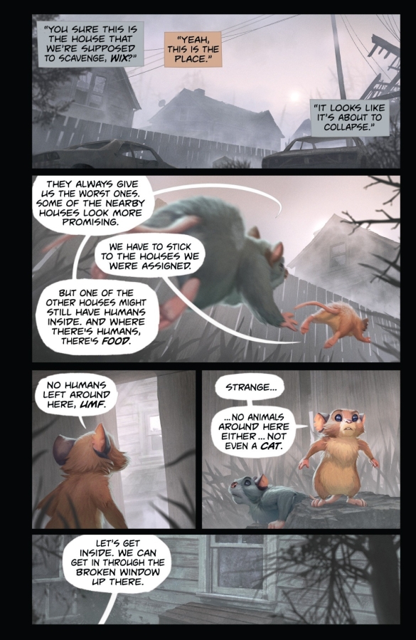 Also, when all of humanity dies, the animals battle for survival in the post-apocalyptic world of SCURRY by MAC SMITH.