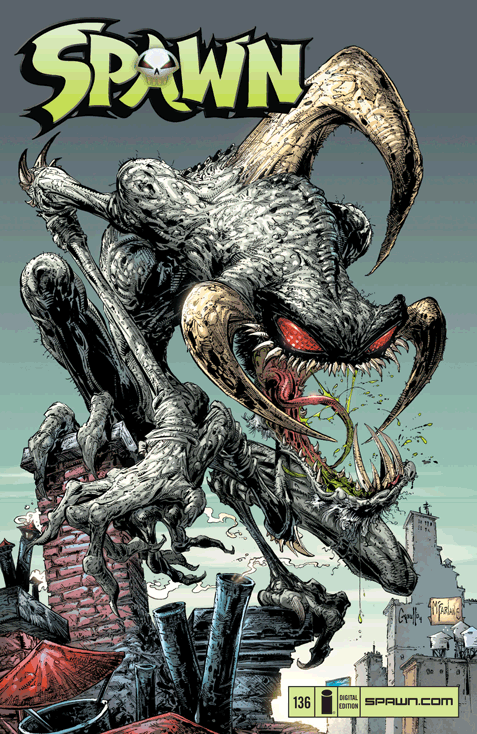 Nyx continues her desperate attempt to re-establish the connection with Spawn, when Mammon interrupts. Without revealing any details of his plans, Mammon plays on Nyx’s emotions by showing the pain and anguish Thea is experiencing while in Hell. Still refusing to give in to his mental and physical pain, Spawn awakens to find himself free from the spiritual barriers of The Dead Zone. Determined to put a stop to the Clown’s plans, he makes his way to the center ring of the Clown’s newly formed Demented Circus. Spawn and the Violator face off once again, with a broken Spawn failing to overcome the Violator. As the Violator celebrates his victory, he plants a kiss on his defeated foe while all of Manhattan falls into darkness.