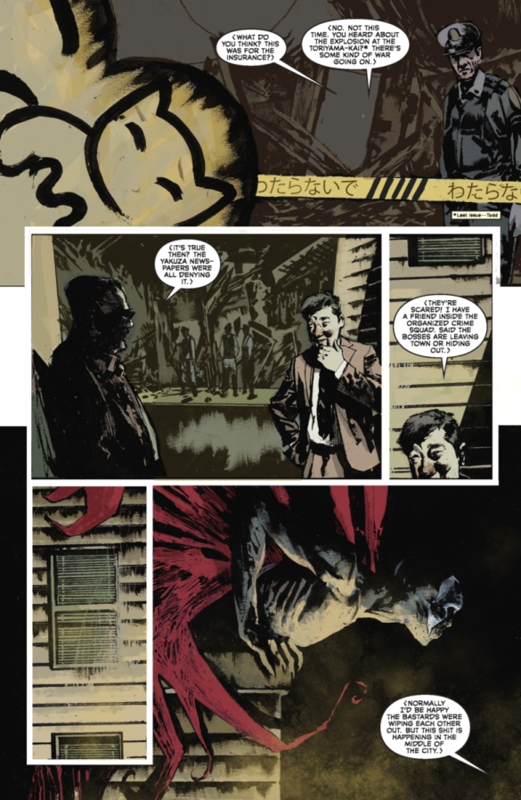 "DARK HORROR," Part Two Tokyo: A ring stolen leads Spawn into a web of kidnapping and murder. He confronts a super-powered gangster who looks to turn Spawn’s own weapons against him.