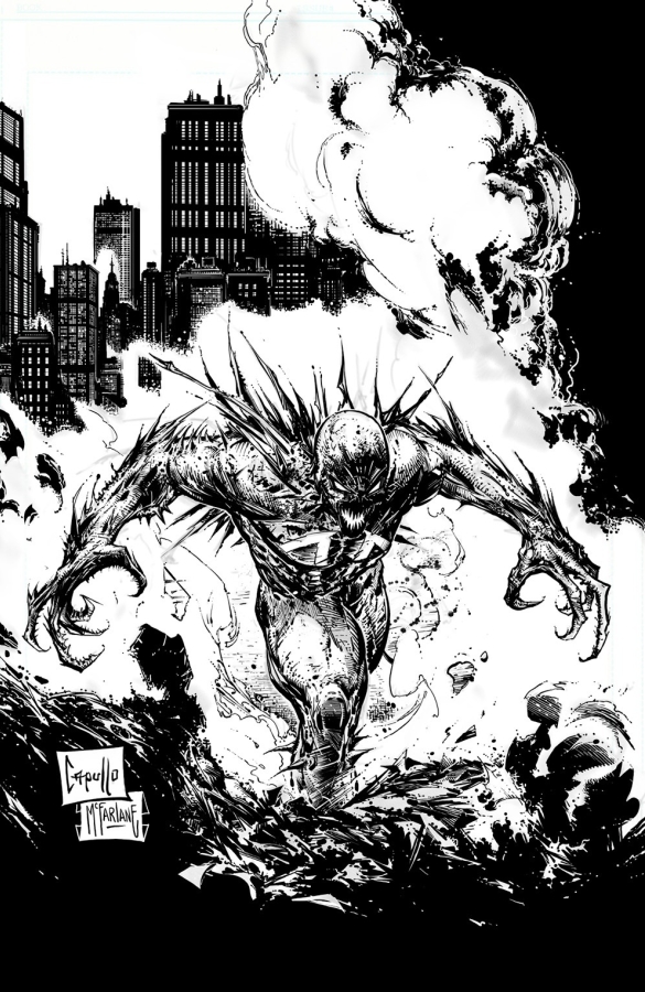 "CULT OF OMEGA," ConclusionThe FINAL confrontation: SPAWN vs. OMEGA SPAWN to the death! If this villain cannot be defeated, then the fabric of time will begin to tear and out will pour the savage warriors of Heaven and Hell upon Earth.TODD McFARLANE and CARLO BARBERI conclude their gut-wrenching story of SPAWN vs. OMEGA SPAWN.