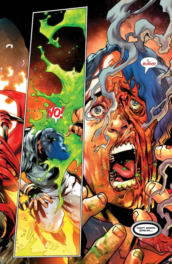 Quinlan has been infected by Peter's nanites. They are suffering from horrific visions of Heaven and Hell. Reliving battles between Angels and Demons. Their mind can only take so much before it breaks...