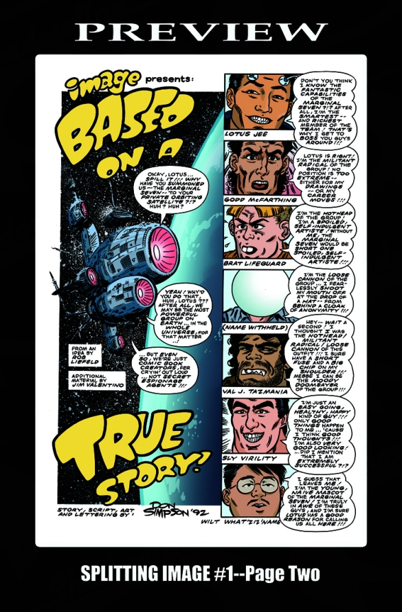 To celebrate Image Comics' 25th Anniversary--the original parody book by DON SIMPSON that skewers the formation of Image and the bozos that founded it! And here's the rub--IT'S ALL TRUE!! (Well, mostly, sort of.) Plus, as a super-special bonus (because we had more pages to fill), we include the normalman-MEGATON MAN SPECIAL by SIMPSON, VALENTINO, MARDER, and BURDEN! Square-bound even! Never before reprinted (and we can certainly see why)! A piece of history at your fingertips (now go wash your hands)!
