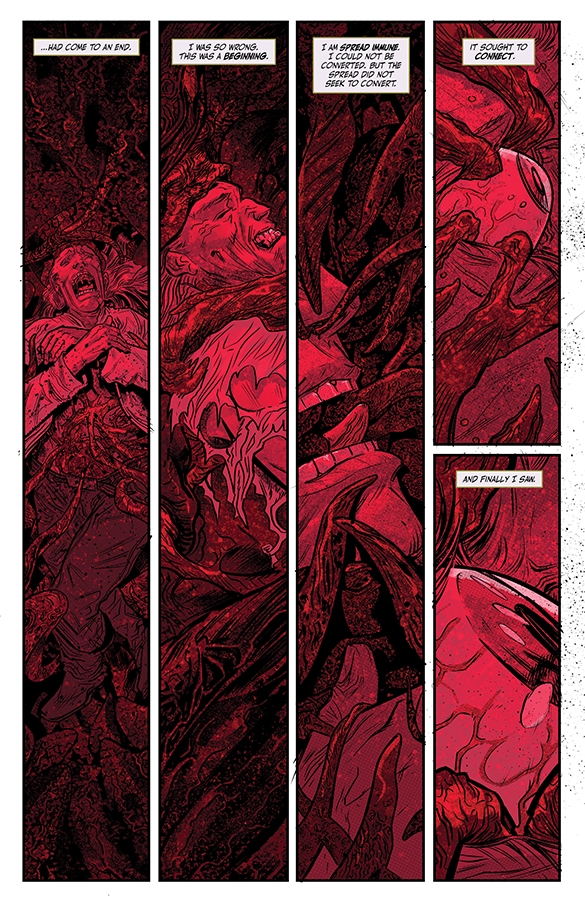 THE FINAL SPREAD STORY ARC BEGINS HERE! "DAMOCLES," Part One No and Hope are on the run from Ravello and Spread, trying to get to a place where they can be rescued. But the Spread has other ideas.