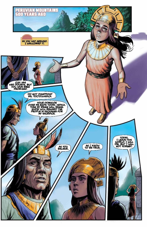 As Frank Danton and his gang confront Mercy and her father about the Incan gold, they violently search the mission seeking the ancient treasure. Meanwhile, Toctollissica’s day of sacrifice has arrived. But will Supay, god of the underworld, discover the secret that the priests have been keeping for her? The lives of Mercy and Toctollissica merge through time, gold, and blood in this penultimate issue.