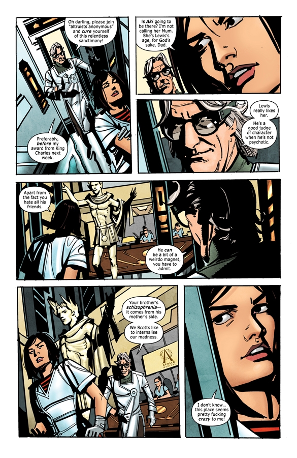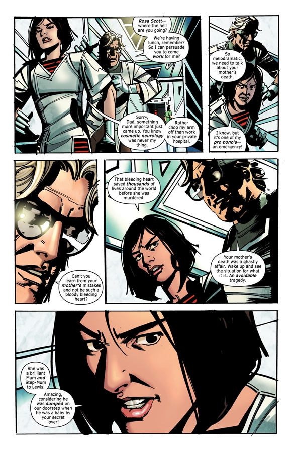"RELATIVE INSANITY," Part Two As Rosa Scott aka Surgeon X struggles to save lives in a post-antibiotic world, she learns more about the horrific death of her mother. This news pushes her brother into a psychotic breakdown, and when the Scott family have a royal engagement at Buckingham Palace with King Charles, things get even weirder.