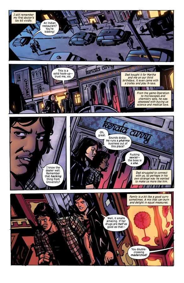 "SURGEON’S GRAVEYARD," Part Three When Surgeon X’s brother, Lewis, hooks her up with some Indian black market pharmaceutical dealers, things don’t go as planned. Rosa is forced into doing a barbaric, historical surgical procedure against her will. But if Rosa’s underground surgery is to survive, she has to learn to play the game with the criminal kingpins of London-town. Edited by Karen Berger.
