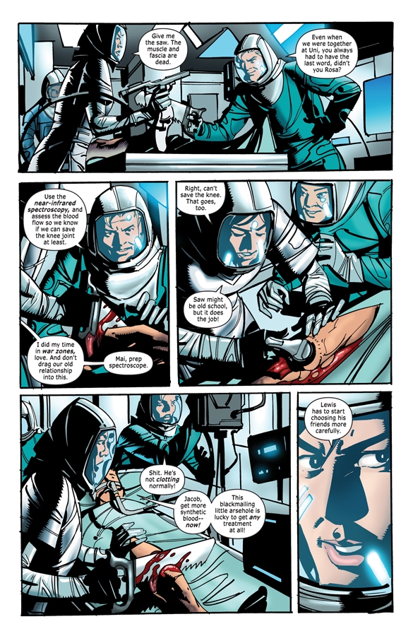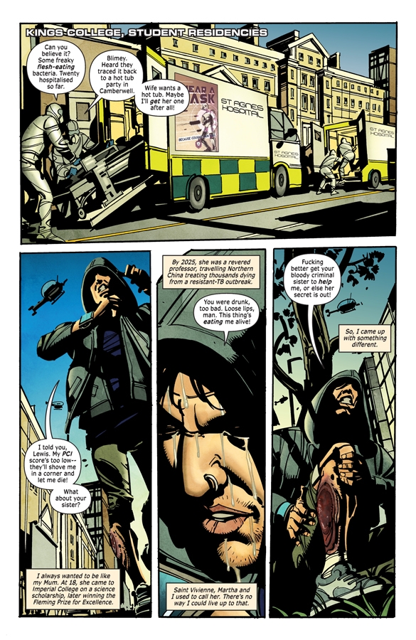 "BLOOD, SWEAT, AND FEARS," Part Four After a fl esh-eating disease rampages through a university dorm, Rosa’s medical decisions are tested. Meanwhile, more secrets about her mother’s past are revealed, and a strange old scientist who may be the link to the mysterious Hippocrates could be the key to it all.